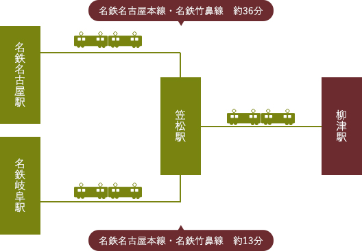 名鉄岐阜駅―笠松駅―柳津駅   名鉄名古屋本線・名鉄竹鼻線  約13分