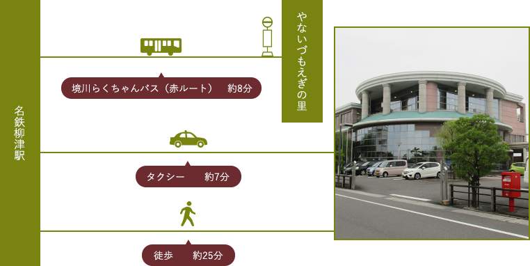 名鉄柳津駅―やないづもえぎの里  約8分