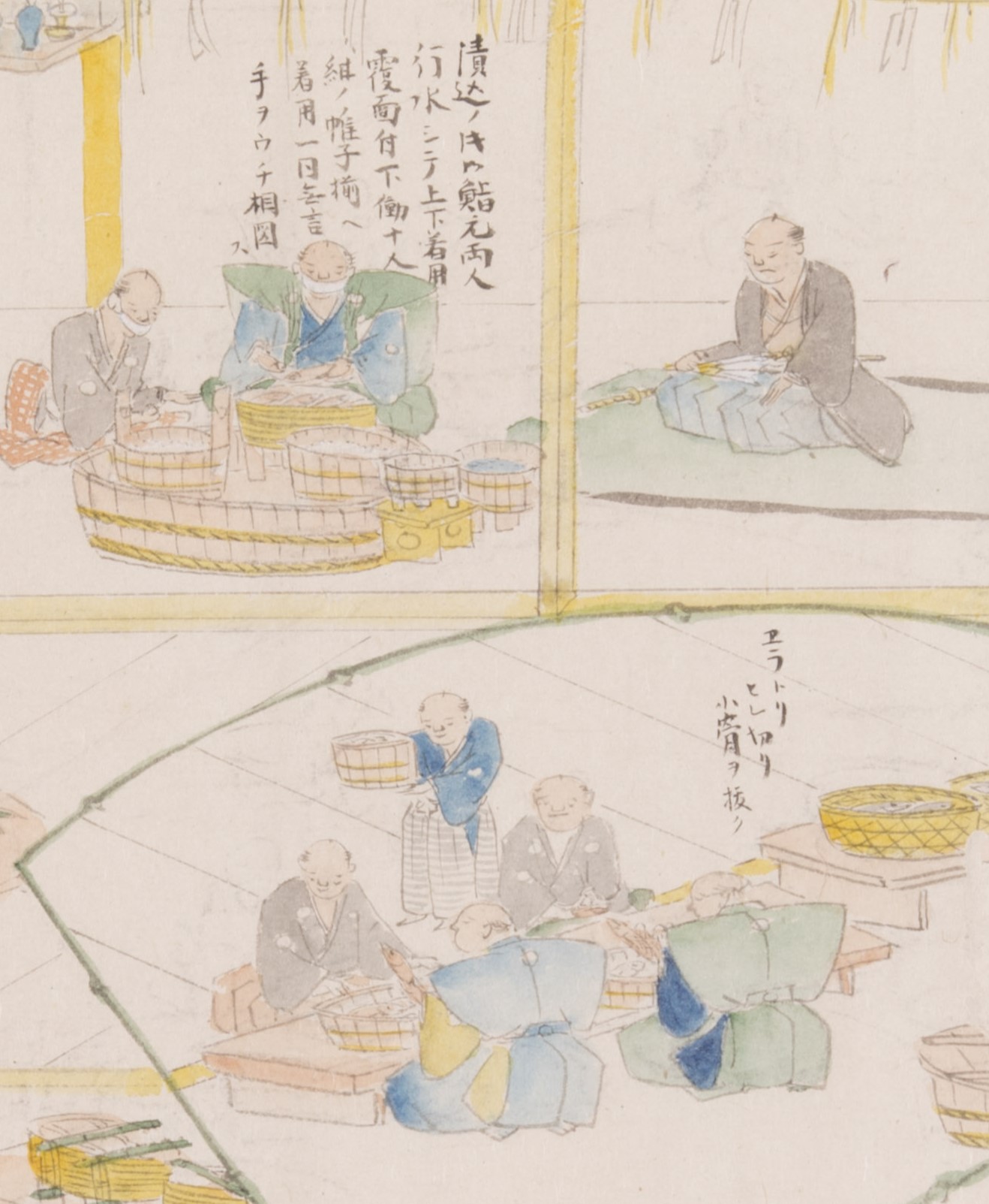 「長良川鮎鮨図巻」は、将軍家に献上される鮎鮨の作り方を描いた絵巻で、岐阜街道(御鮨街道)を運ばれていった鮎鮨の詳細を知ることができる資料です。